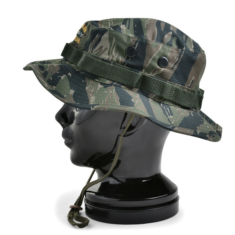 通称ジャングルハットとも呼ばれているハットは、ミリタリー王道スタイル。